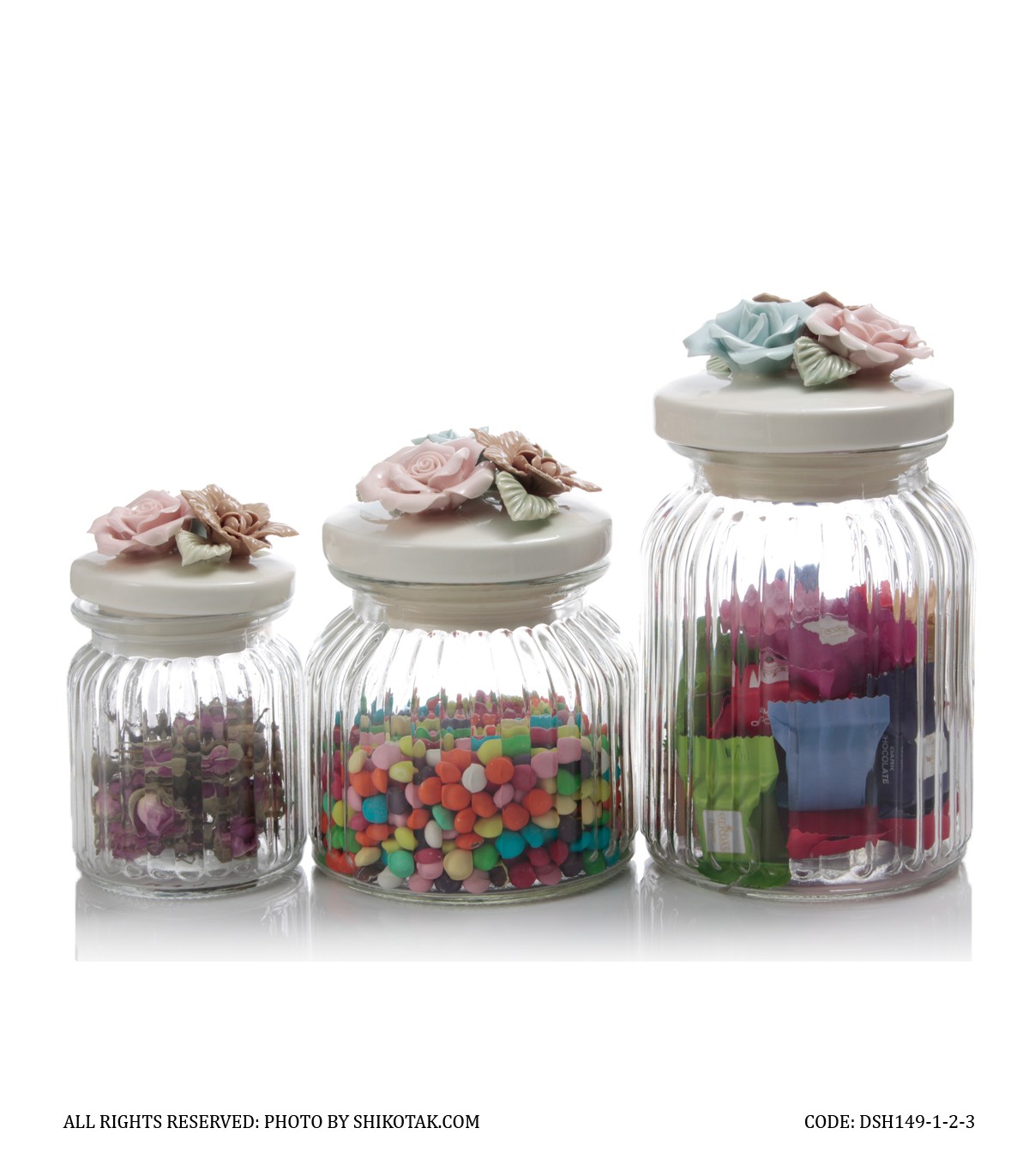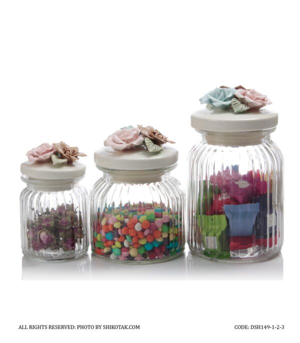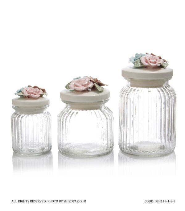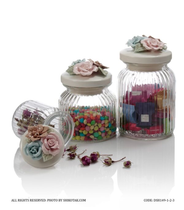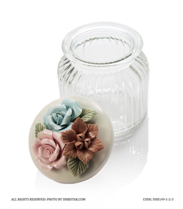 بانکه در سرامیکی حبوبات شیشه ای مدل گل رز