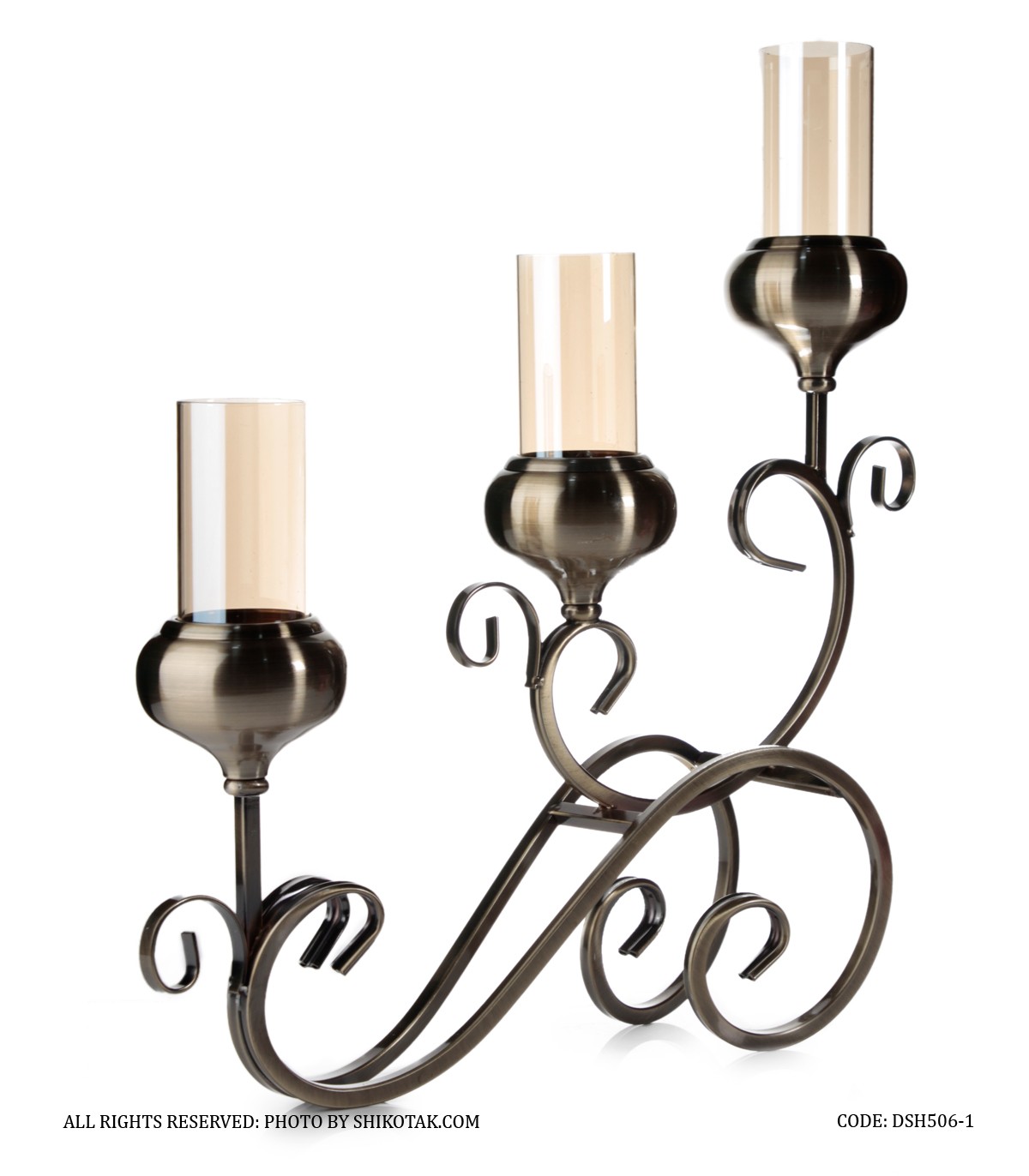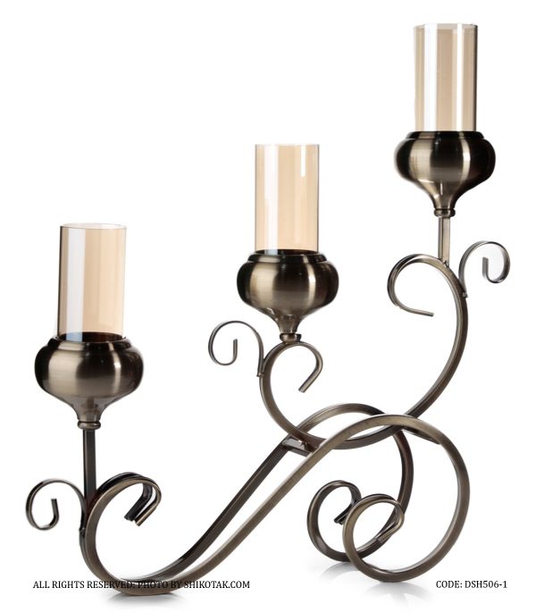 جاشمعی سه شعله مدل کالسکه ای برنزی