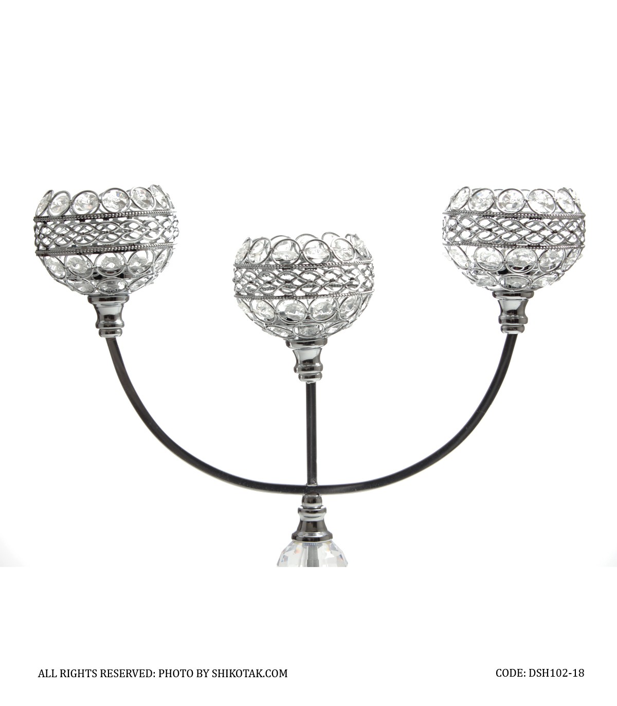 جاشمعی پایه دار نقره ای ۳ شعله مدل w