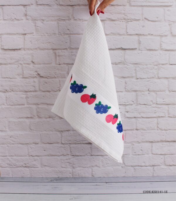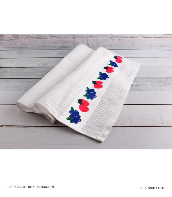 دستمال نخی آشپزخانه طرح زیتون و توت فرنگی