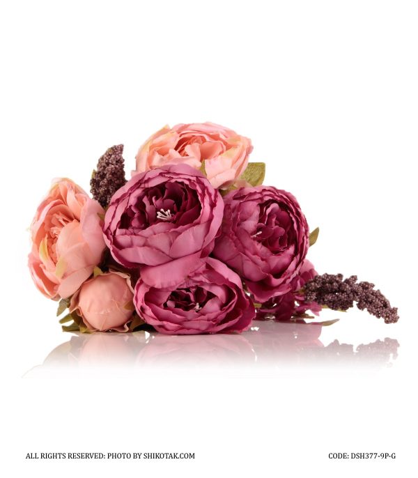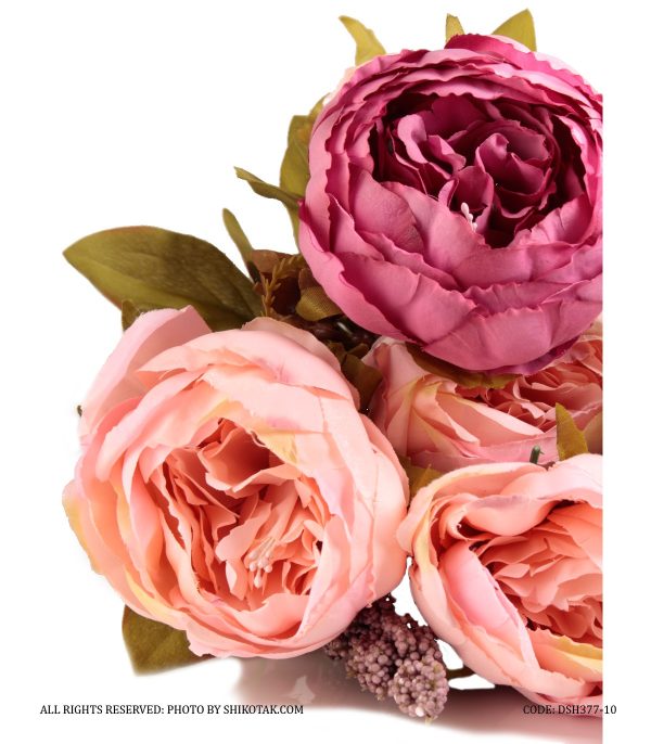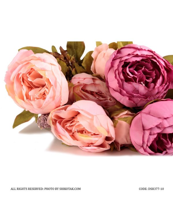 دسته گل مصنوعی رز هلندی سفید صورتی مدل ۳۷۷-۷
