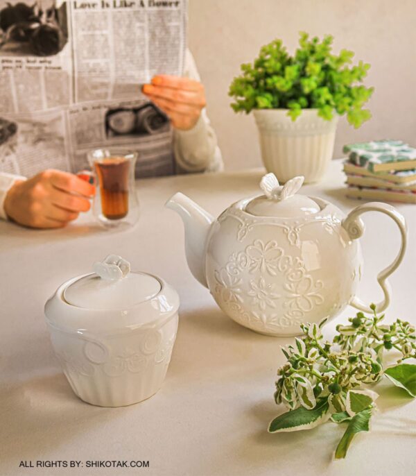 ست قندان و قوری اینگلیش هوم سفید مدل گشتا