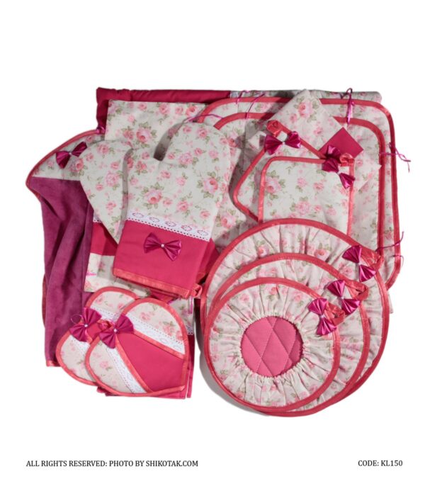 سرویس آشپزخانه پارچه ای عروس ۱۸ تکه مدل لاله گون