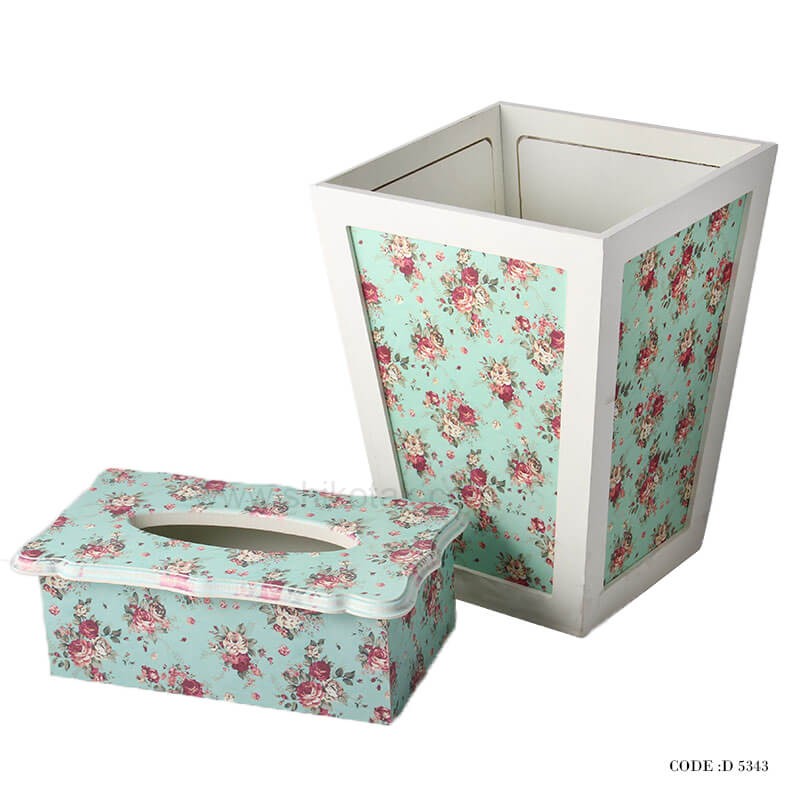 سرویس سطل و جا دستمالی چوبی گلدار مدل فارا