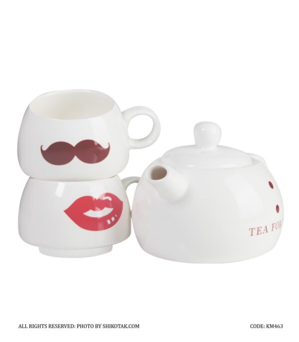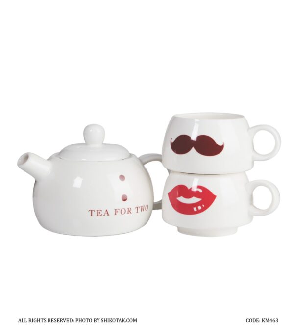 - شامل یک قوری و دو عدد فنجان و یک عدد درب قوری