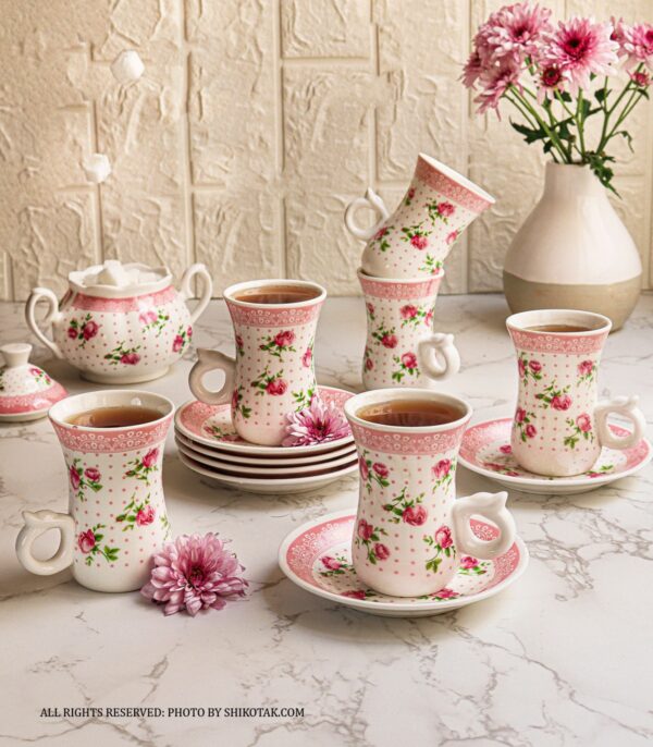 سرویس چای خوری کمر باریک و قندان مدل فلورا