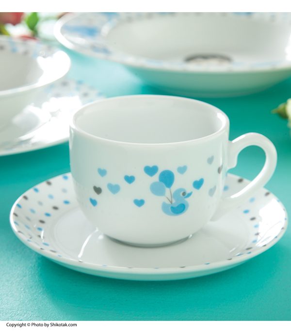 1عدد بشقاب خورش خوری، 1عدد بشقاب میوه خوری، 1عدد سالاد خوری، 1عدد فنجان، 1عدد نعلبکی |
