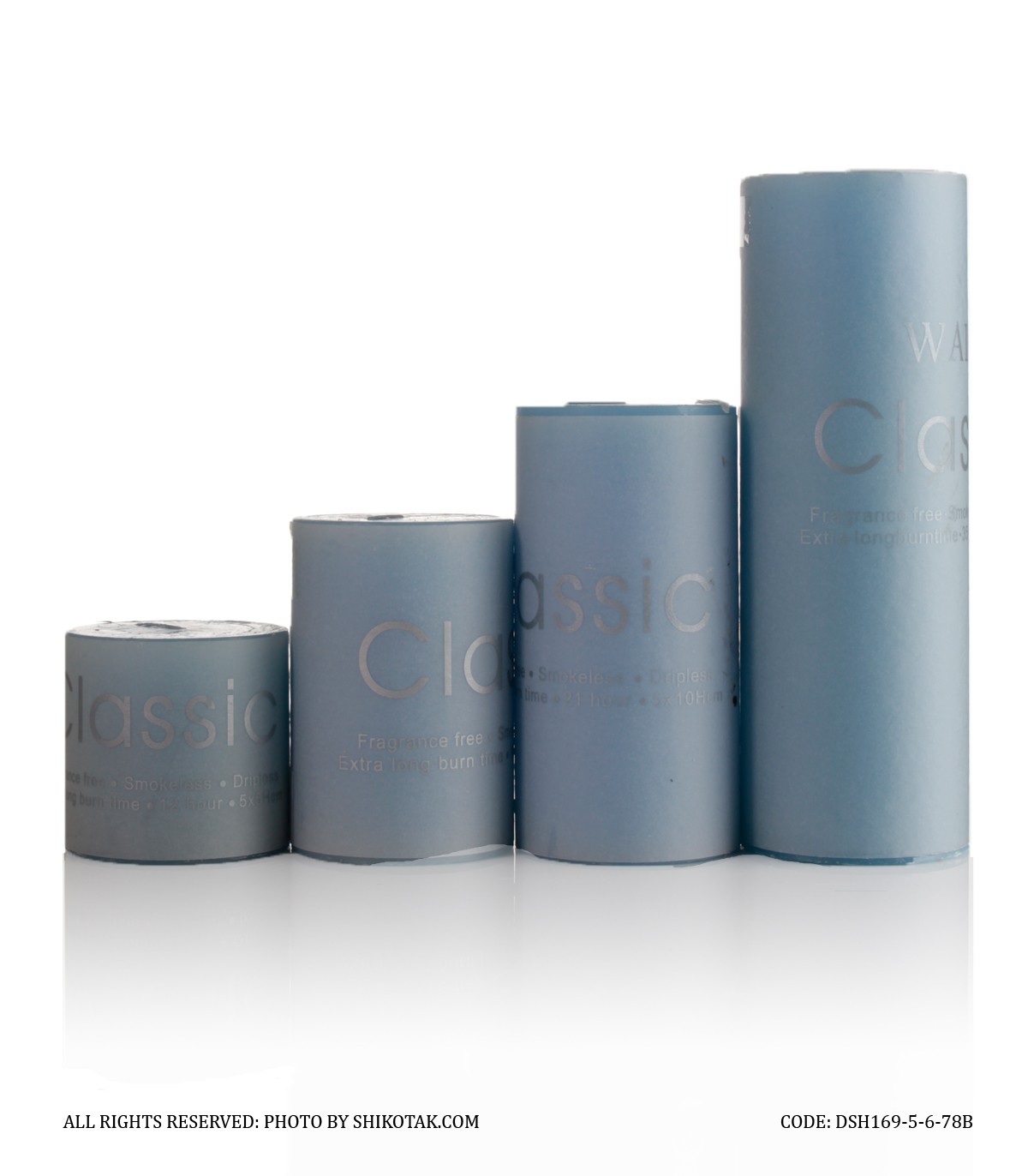 شمع استوانه ای ساده قطر ۵ مدل پری ماه آبی