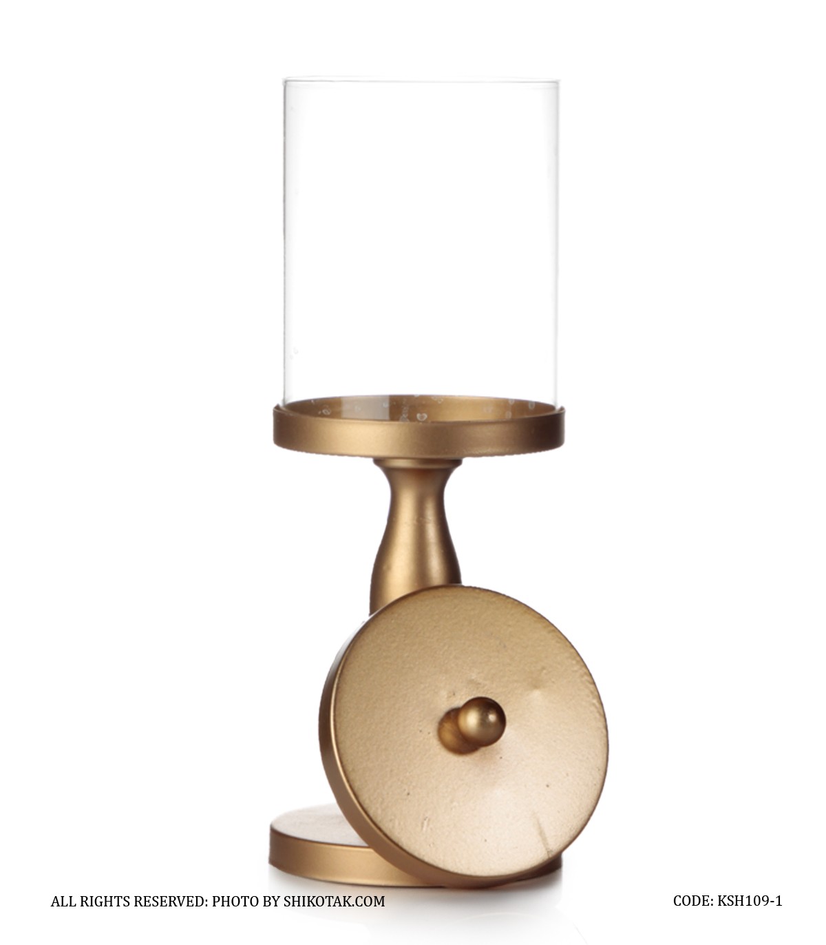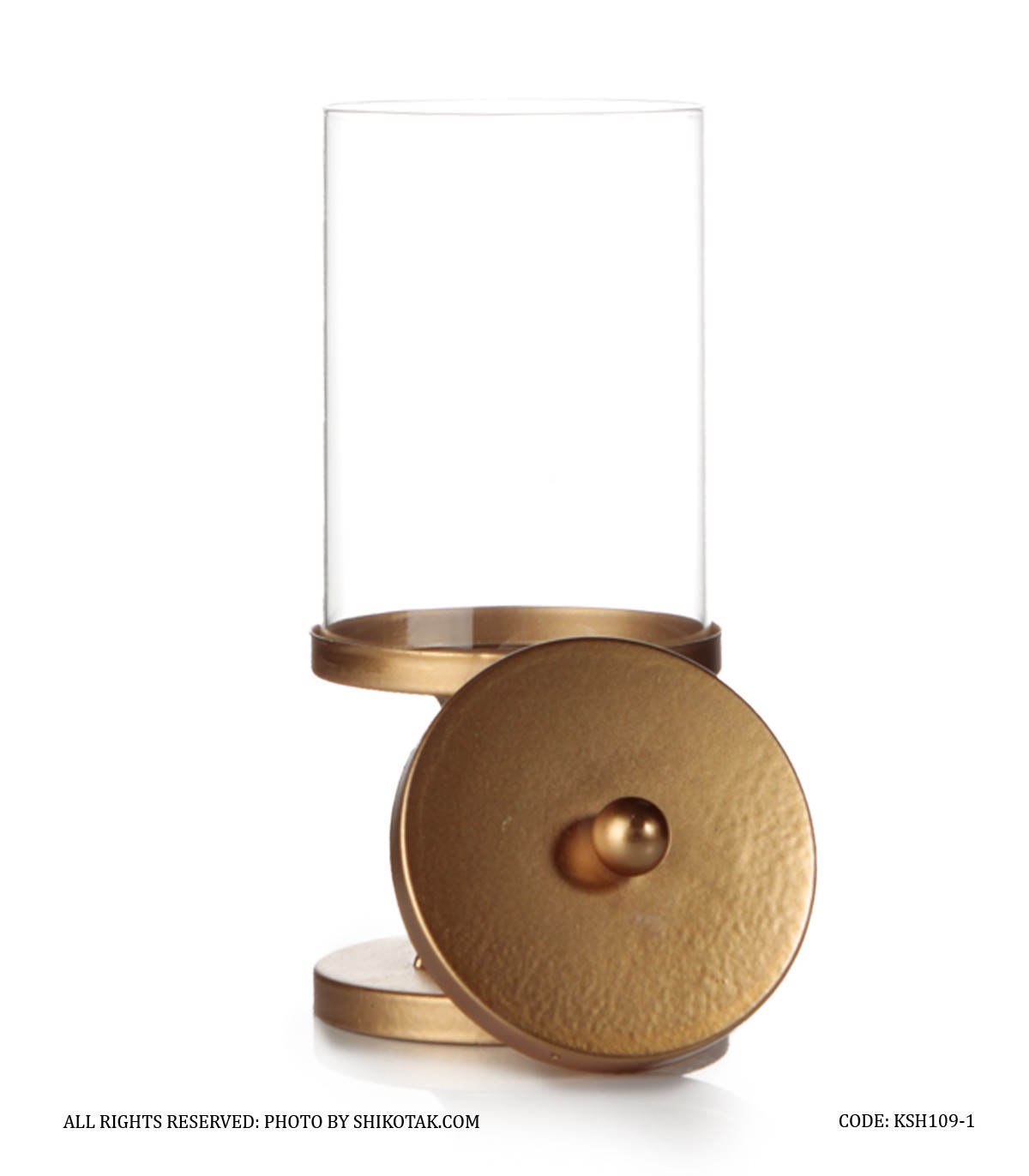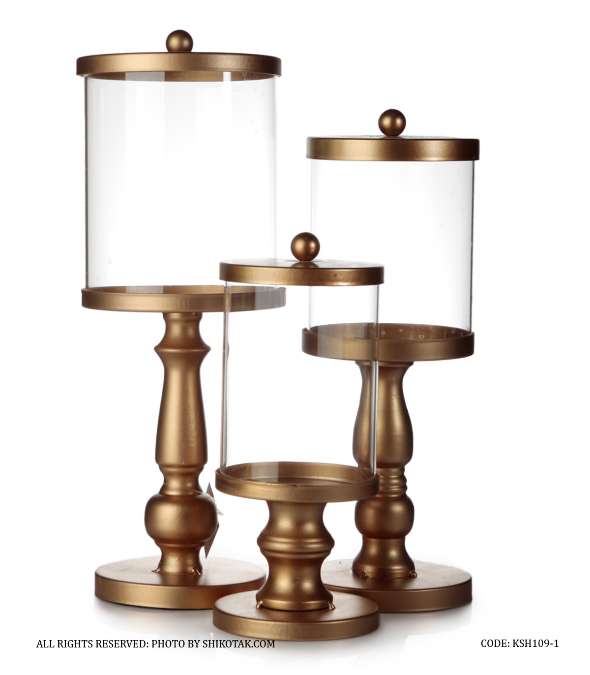 کندی باکس پایه دار سه تایی فلزی شیشه ای مدل ماهین طلایی
